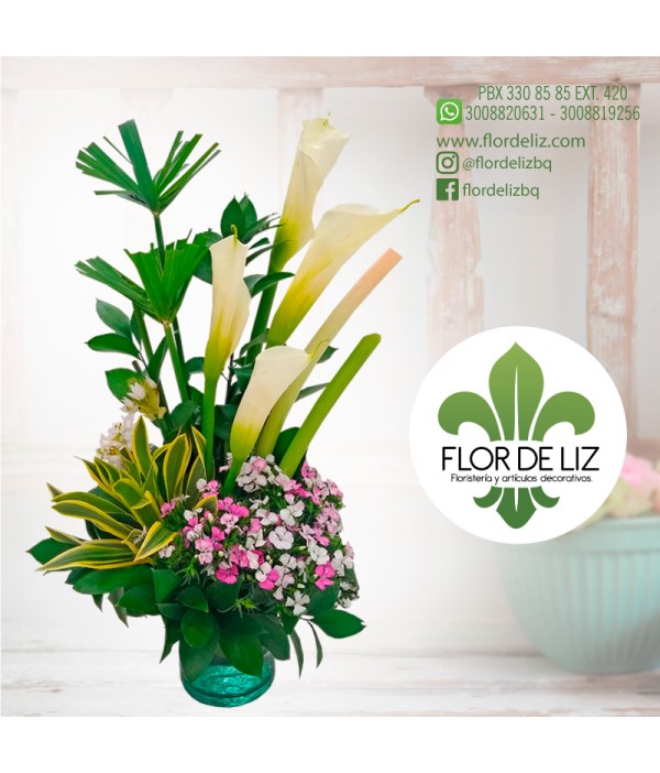 Solitario elaborado en hermosos cartuchos, gypsy, canción de la india, papiros, estrellas de belén, follaje, base vidrio.