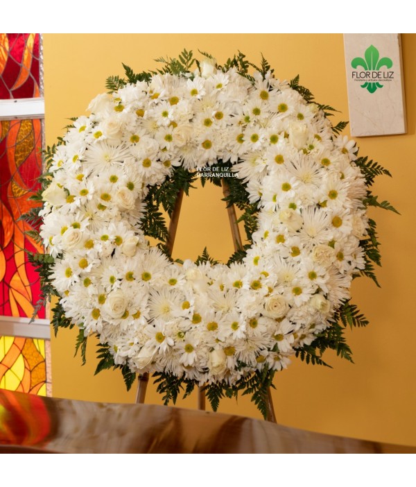 Corona Fúnebre elaborada en Margaritas y rosas blancas